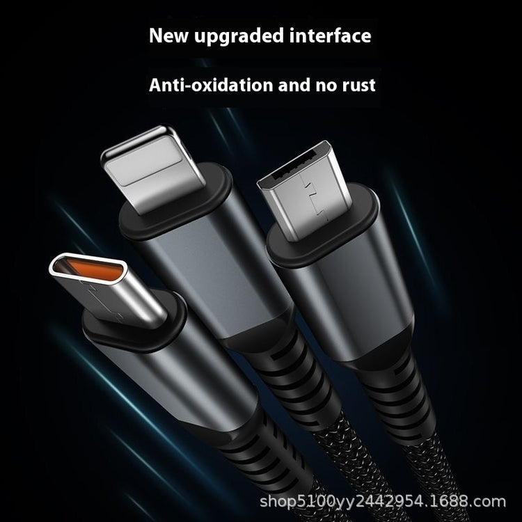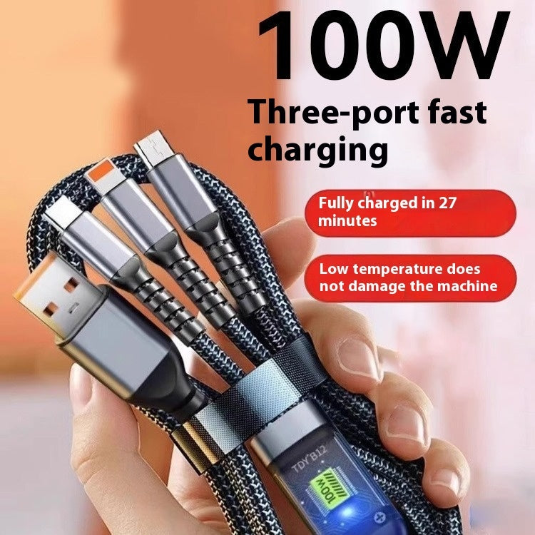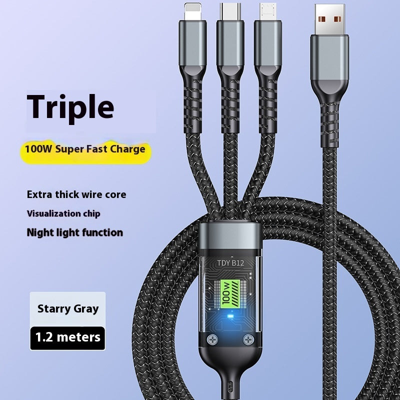 Mobile Phone Data Cable One-to-three Digital Display With Light Three-in-one Fast Charge Car Charging Cable