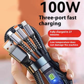 Simplify your charging needs with the YOSHKAR 3-in-1 cable, designed to support up to 100W ultra-fast charging. With versatile connectors and a rugged, durable build, this single cable powers multiple devices seamlessly, delivering maximum efficiency and convenience wherever you go.